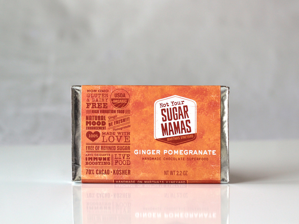 Ginger is a potent food that helps relax our digestive system and acts as an anti-inflammatory. Pomegranate is an antioxidant rich food that is known to offer protection against heart disease and cancer. There are sprinkled raw cacao nibs on the back for an extra crunch and antioxidant punch! One little bite of this bar and it will leave your immune system buzzing with excitement.
